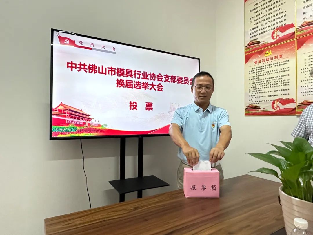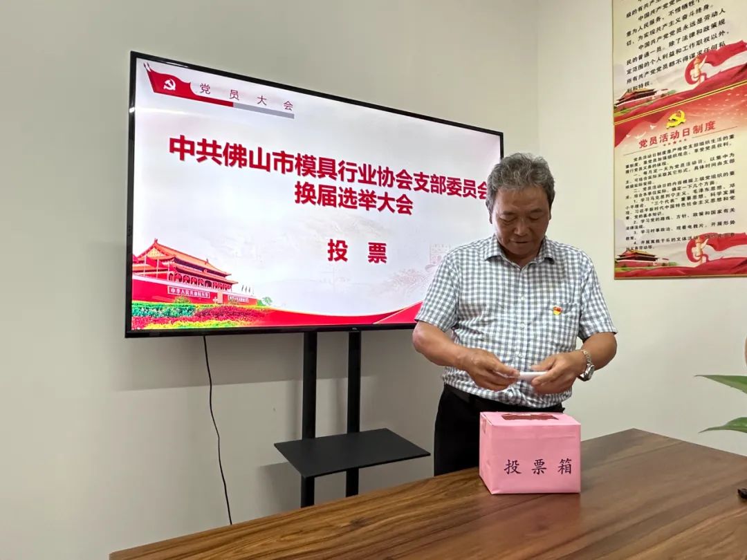 大會宣讀了上級黨組織《關于同意中共佛山市模具行業(yè)協(xié)會支部委員會換屆選舉的批復》,全體審議表決通過了《選舉辦法》(草案)、監(jiān)票人和計票人名單,委員候選人名單。會上進行無記名投票。在監(jiān)票人周富強同志的監(jiān)督下,黨員同志們有序在投票箱投下了神圣的一票。并通過公正嚴明的計票,計票人劉水義同志宣讀選舉結果,選舉饒學高同志連任黨支部書記。