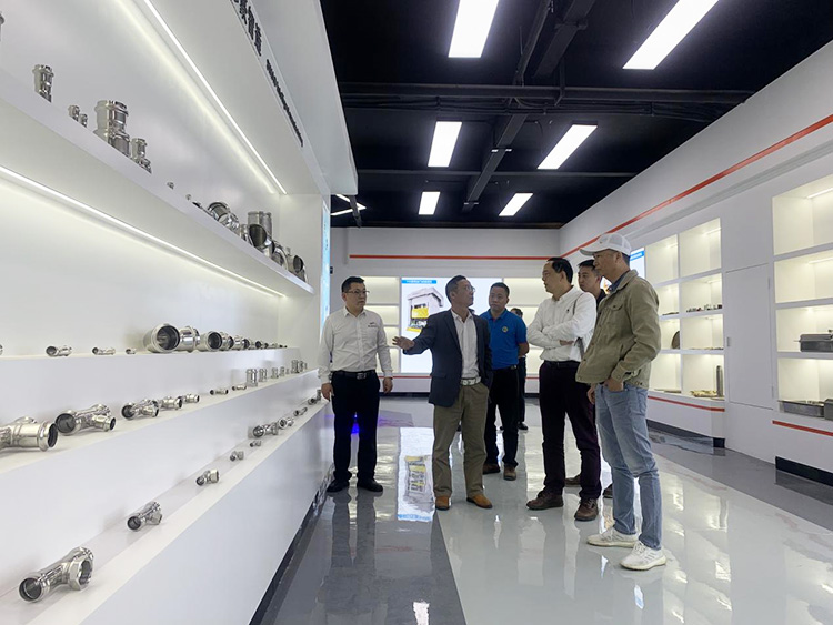 在廣東思豪科技集團(tuán)周富強(qiáng)董事長(zhǎng)的帶領(lǐng)下分別參觀了展廳和生產(chǎn)車(chē)間。介紹了集團(tuán)下屬公司廣東思豪流體技術(shù)有限公司,該公司是一家專注于壓縮空氣、惰性氣體、氮?dú)?、真空、飲用水、工業(yè)循環(huán)水廠、供應(yīng)鏈到市場(chǎng)營(yíng)銷的創(chuàng)新新企業(yè)。主要產(chǎn)品為具有模塊化快速連接的卡壓式、卡凸式、溝槽式鋁合金管道和不銹鋼管道。同時(shí)參觀了設(shè)備公司和管件廠,通過(guò)周富強(qiáng)董事長(zhǎng)的介紹,讓大家對(duì)思豪集團(tuán)也有了更深一步的了解。