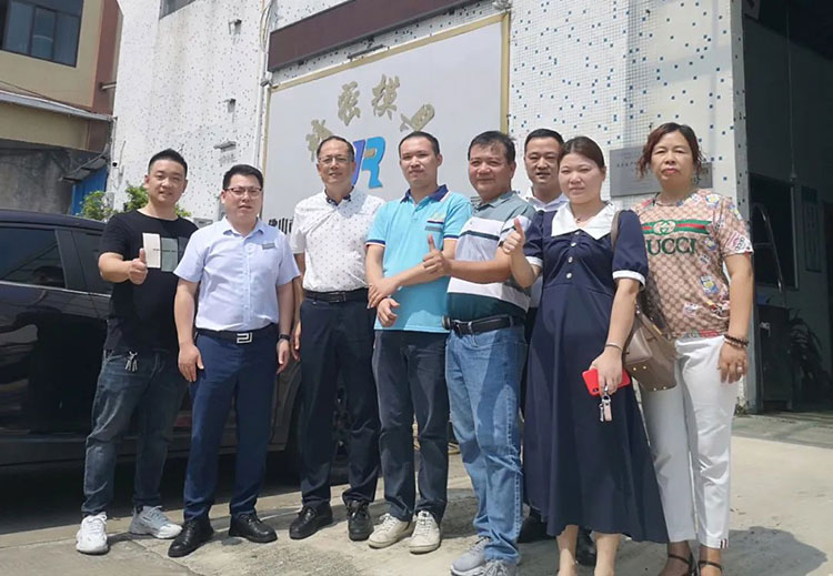 走訪一行在佛山市順德區(qū)杰銳五金塑料有限公司合影留念