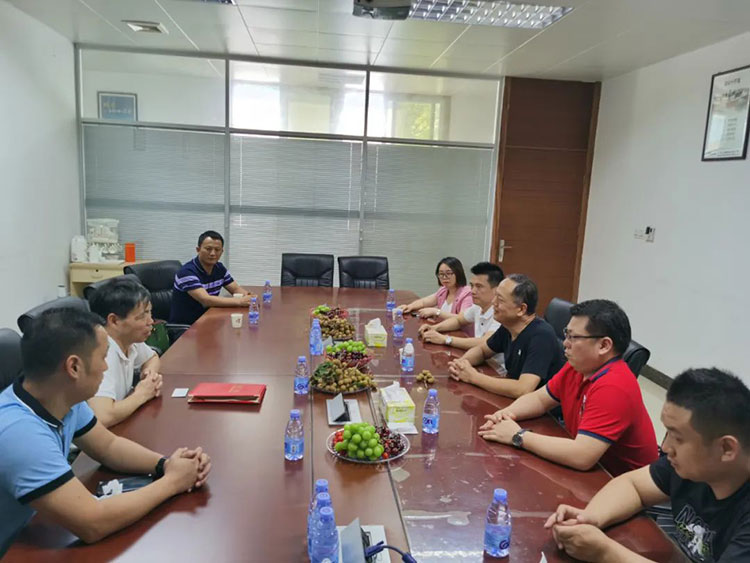 走訪一行在會(huì)議室聽(tīng)取梁瓊鋒總經(jīng)理介紹公司發(fā)展情況