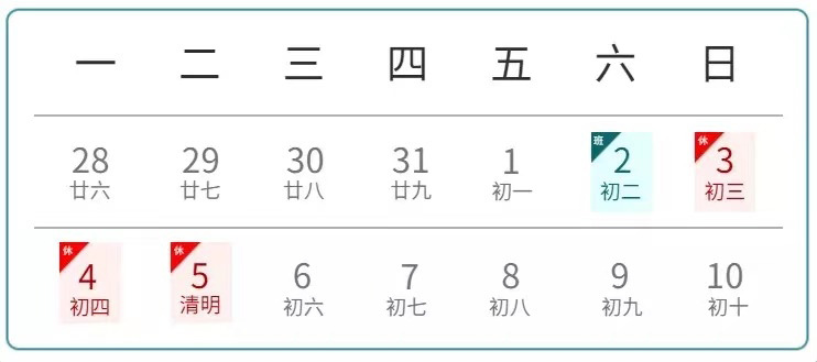 2022年4月2日(周六)正常上班