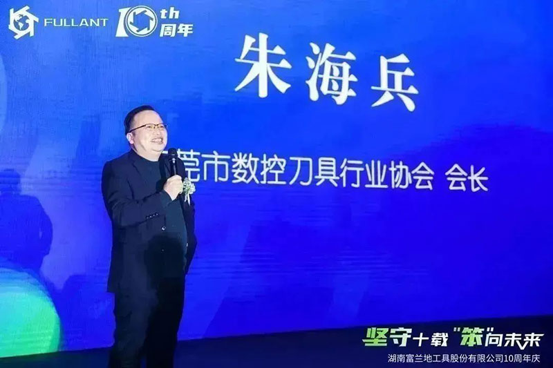 東莞數(shù)控刀具行業(yè)協(xié)會會長朱海兵發(fā)表講話。朱海兵會長代表東莞數(shù)控刀具協(xié)會祝賀富蘭地十周年生日快樂。